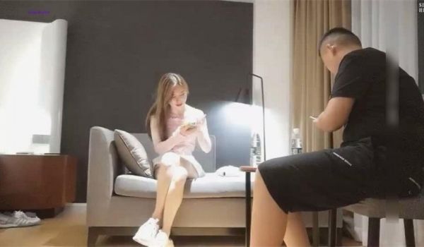 女神级清秀苗条小姐姐约到酒店,身穿一袭性感连衣裙